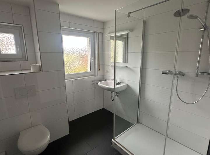 - Tageslichtbad mit Dusche, Waschbecken und WC