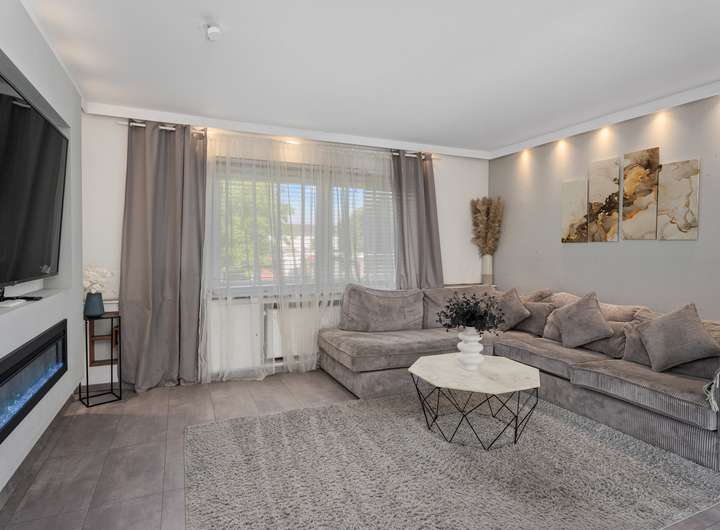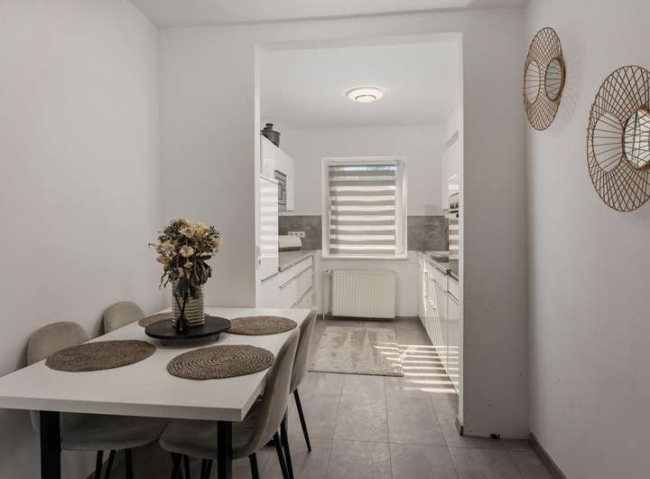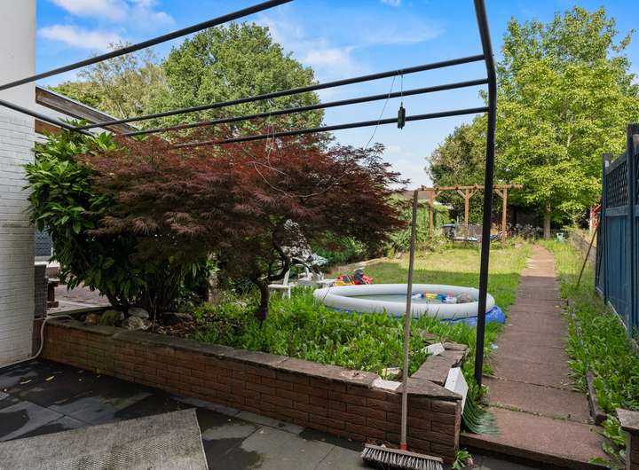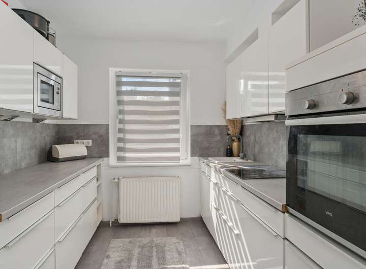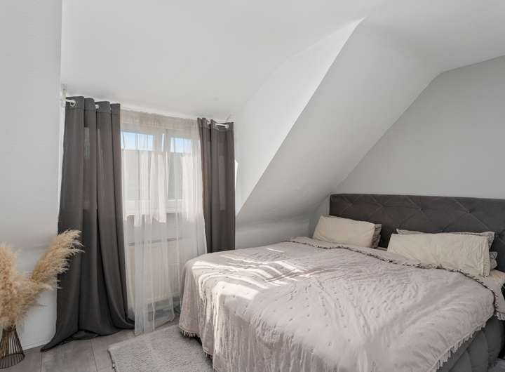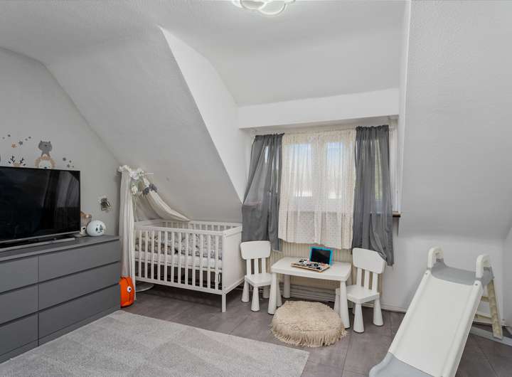 Das im Jahr 1950 fertiggestellte Reihenmittelhaus in Massivbauweise bietet Ihnen mit 103,43m² Wohnfläche, die sich über drei Etagen auf vier Wohn- und Schlafzimmer, offene Küche, zwei Duschbäder und Flure verteilen, ausreichend Platz, damit Sie sich hier ganz nach Ihren Vorstellungen gemütlich einrichten können. Das Haus punktet mit seinem sinnvollen Grundriss mit gut nutzbaren Zimmergrößen, der angenehmen Helligkeit dank der großen Fensterflächen, die viel Tageslicht hineinlassen, aber auch durch seine sehr solide Ausstattung, zu der unter anderem die neue, erst 2020 eingebaute Gaszentralheizung, die Holzfußböden auf allen drei Wohnebenen und die komplett ausgestattete Einbauküche zu zählen sind. Das Erdgeschoss wird vom Wohn- / Esszimmer (21,65m²) mit angeschlossener, halb offener Küche (7,10m²) dominiert. Vom Wohnzimmer haben Sie einen schönen Blick in den Garten, erreichen diesen aber "nur" vom Untergeschoss (Souterrain) aus. Die halb offene Küche ist mit einer ganz in Weiß gehaltenen, komplett ausgestatteten Einbauküche eingerichtet, die dank ihrer ergonomisch platzierten Elektrogeräte und der großen Arbeitsflächen zum (gemeinsamen) Kochen einlädt. Im Dachgeschoss warten zwei Wohn- und Schlafzimmer auf Sie, die sich idealtypisch als Elternschlafzimmer und Kinder- bzw. Jugendzimmer anbieten, dank Größe (15,78m² | 10,10m²), Schnitt und Helligkeit jedoch äußerst flexibel nutzbar sind und sich jederzeit problemlos Ihrer Lebens- bzw. Bedarfssituation anpassen lassen, sei es als Hobby-, Arbeits- oder Gästezimmer. Die beiden Zimmer teilen sich das dazwischenliegende Duschbad (3,20m²). Das vierte Wohn- und Schlafzimmer (17,25m²) finden Sie im Untergeschoss bzw. Souterrain (Raumhöhe 2,31m²). Von hier aus gelangen Sie auch auf die geflieste "Frühstücksterrasse" (12,42m² Grundfläche) mit Ostausrichtung und über eine Stufe weiter in den Garten. Das Tageslichtbad mit Dusche beherbegt auch die neue Gaszentralheizung (Einbau 2020). Ein Abstellraum (3,35m²) sowie der große Flur (6,45m²) komplettieren die se Wohnebene..