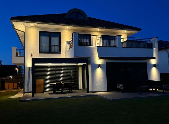 Erbaut wurde das Haus im Jahr 2017 als Musterhaus des renommierten Bauunternehmens ARGE Haus GmbH – und überzeugt bis heute mit seiner soliden Massivbauweise und zeitlosen Eleganz.
