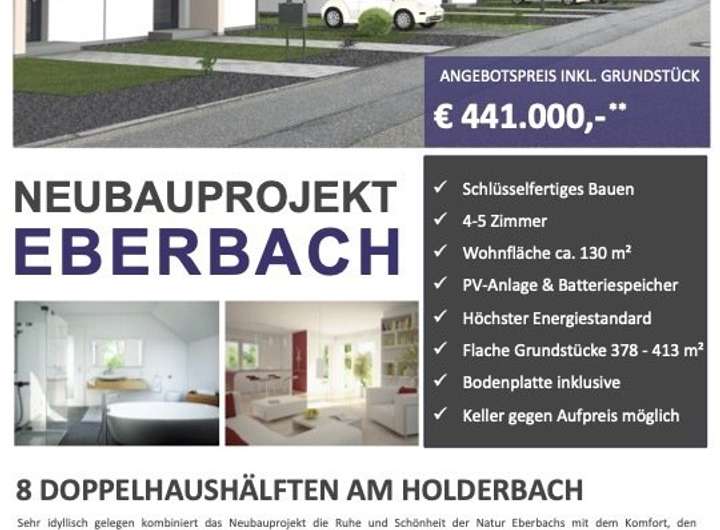 Sehr idyllisch gelegen kombiniert das Neubauprojekt die Ruhe und Schönheit der Natur Eberbachs mit dem Komfort, den lebendigen Stadtkern fußläufig in wenigen Minuten erreichen zu können. Bauen Sie Ihr Traumhaus mit dem ausgezeichneten Testsieger Bien-Zenker in moderner, individueller und nachhaltiger Bauweise und profitieren Sie von attraktiven Förderungen.