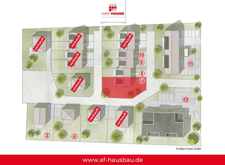 In dieser Anzeige handelt es sich um Reihenendhaus Nr. 7. Dieses kann für 639.000,-€ bezugsfertig erworben werden.