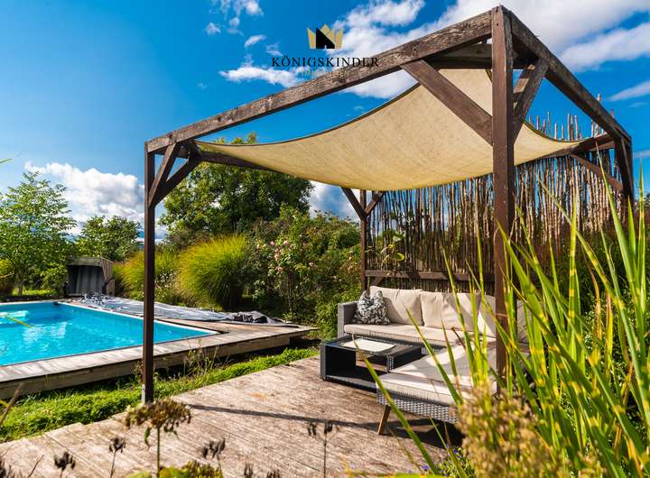 Das Highlight ist der großzügige Pool mit Lounge, der perfekte Platz, um an heißen Sommertagen ins kühle Nass zu springen oder mit Freunden entspannt den Sonnenuntergang zu genießen.