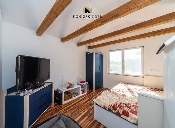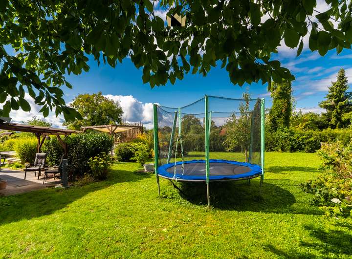 Auf der Terrasse können Sie die Sonnenstrahlen mit einem Glas Wein genießen, während die Kinder auf dem Trampolin herumtollen. Und wenn Freunde zu Besuch kommen, wird gegrillt, gelacht und gelebt.