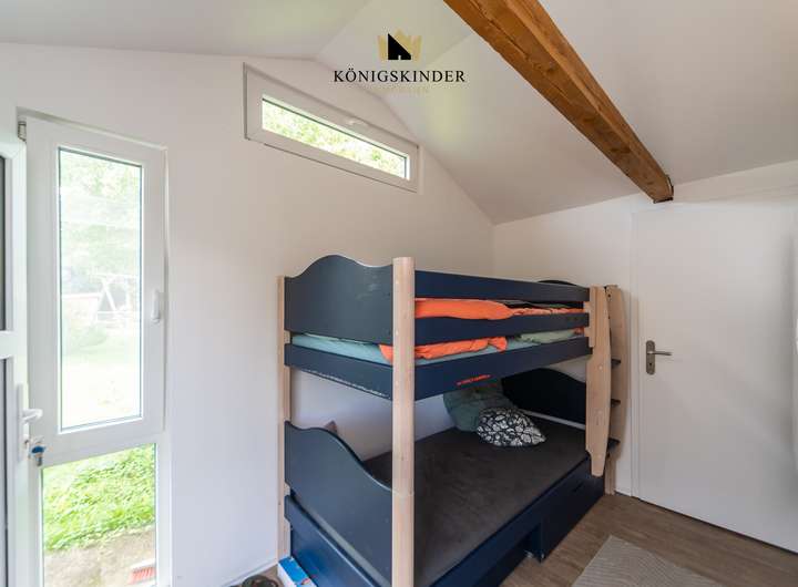 Ein charmantes Gartenhaus mit zwei Zimmern und eigenem WC lädt zum Verweilen ein. Ob als kreativer Rückzugsort oder gemütliches Domizil für die Nacht, hier finden Sie Platz für all Ihre Ideen.