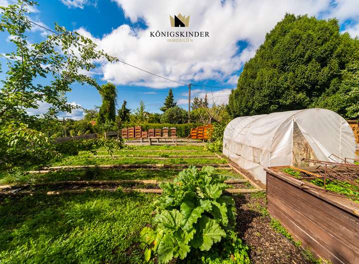 Für Naturliebhaber gibt es Gemüse- und Erdbeerbeete, die frische Ernte direkt vor der Haustür ermöglichen. Ein Stück Selbstversorgung und Naturverbundenheit inmitten Ihres eigenen Gartens. Dank Strom- und Wasseranschluss ist für Komfort gesorgt, sodass Sie sich ganz auf die schönen Dinge konzentrieren können.