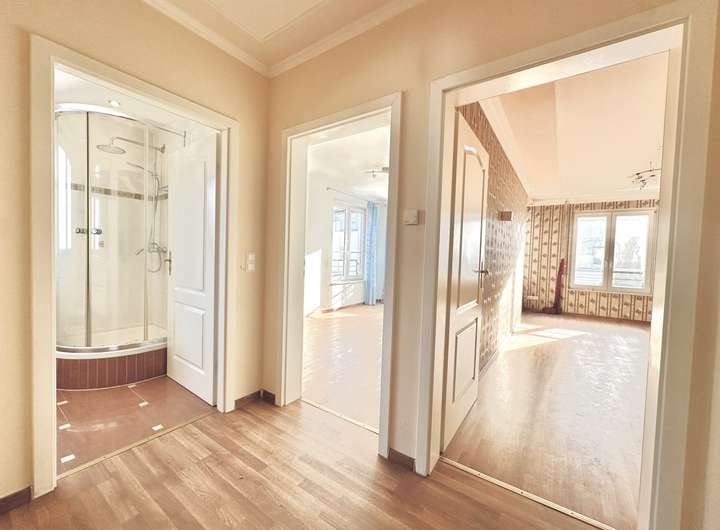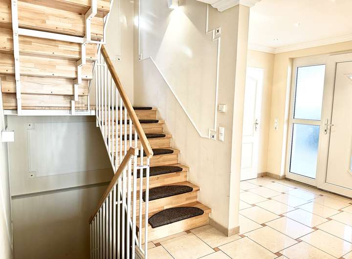 Das im Jahr 2006 erbaute Haus befindet sich in einem gepflegten Zustand und überzeugt auf Anhieb mit einem repräsentativen Wohnambiente. Bereits beim Betreten fallen die aufwendig gearbeiteten Stuckverzierungen und die moderne Deckenbeleuchtung ins Auge – ein echtes Highlight im großzügigen Wohnbereich.