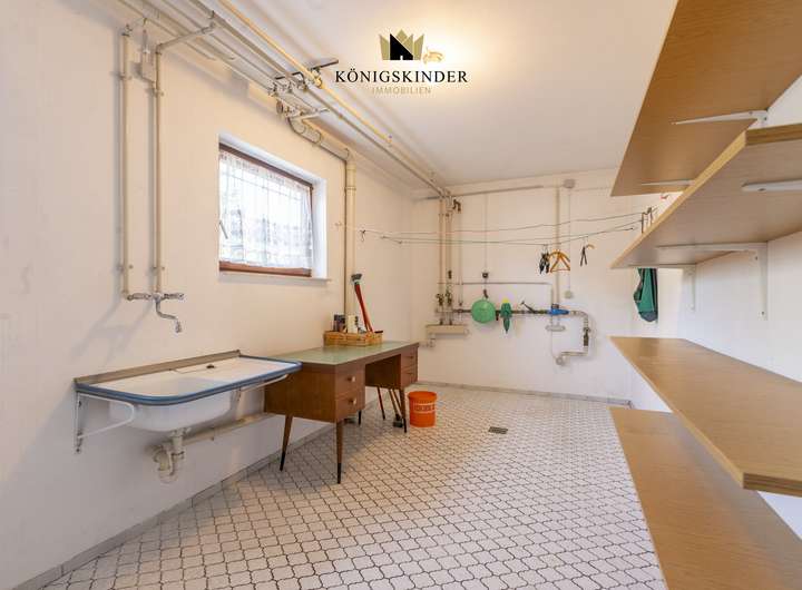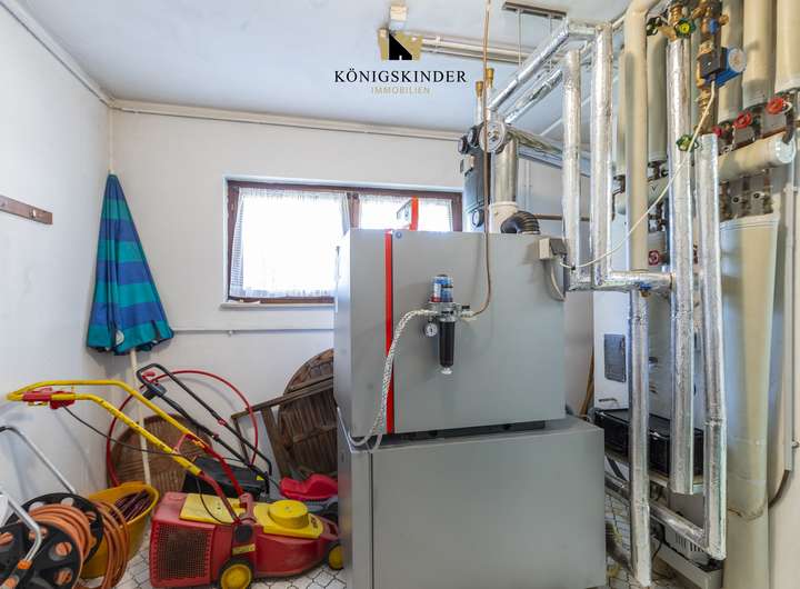 Dann finden Sie im Untergeschoss noch einen Wasch- u. Trockenraum, einen Vorratsraum, einen Hobby- bzw. Abstellraum, sowie den Heizungsraum mit angrenzendem Öltankraum. Vom Hobby- bzw. Abstellraum aus können Sie auf die ebenfalls nach Südwesten ausgerichtete Terrasse und in den tollen Garten gehen.