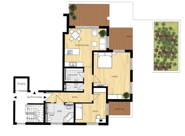 Der lichtdurchflutete Wohn- und Essbereich mit offen gestalteter Küche bildet das Herzstück der Wohnung. Hier verbinden sich Kochen, Genießen und Wohlfühlen zu einem harmonischen Ganzen. Von hier aus gelangen Sie auf die sonnige Westterrasse, die zum Entspannen, Lesen oder gemütlichen Beisammensein einlädt. Ein weiterer Balkon, zugänglich vom Kinder- oder Arbeitszimmer, bietet einen ruhigen Rückzugsort für entspannte Momente.
