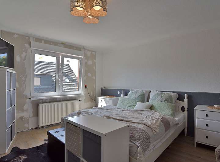 Es handelt sich um eine bereits teilsanierte und gepflegte Doppelhaushälfte mit moderner Ausstattung auf einem ansprechenden Grundstück.
