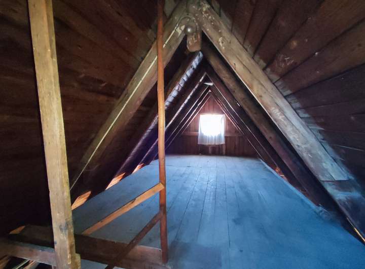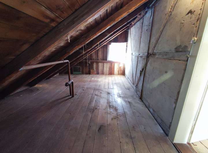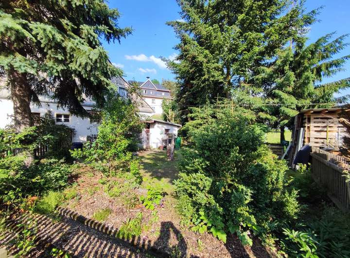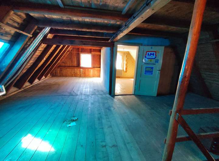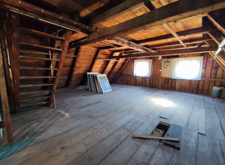 Über eine weitere Holztreppe gelangt man ins Dachgeschoss. Bis auf ein kleines Schlafzimmer ist dieser nicht ausgebaut. Hier gibt es jedoch viel Platz, um weiteren Wohnraum zu schaffen. Die Immobilie ist teilweise unterkellert, hier wurden einst die Bierfässer gelagert. Am Gebäude befindet sich ein Parkplatz für ca. 15 PKWs. Neben dem Haus befindet sich ein kleiner Garten mit altem Baumbestand und einer kleinen Hütte (ehemals Hundezwinger) und eine größere Rasenfläche. Schaffen sie sich eine gemütliche Grillecke, auf welcher sie mit der Familie und Freunden feiern können. Auch für die Kinder gibt es ausreichend Platz zum Spielen und Toben.