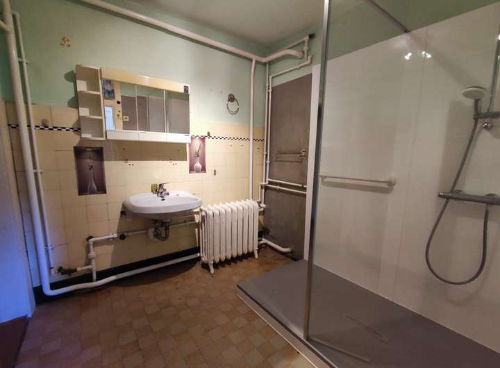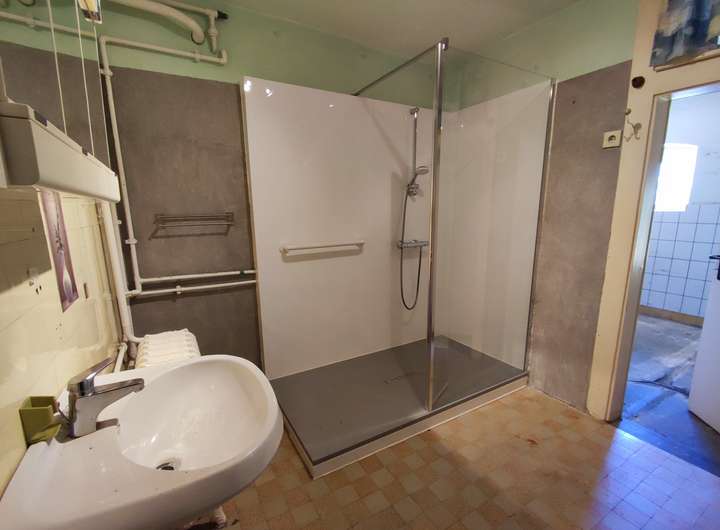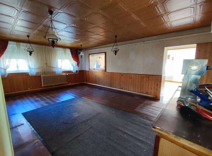 Das Objekt bietet eine sehr gute Ausgangsbasis für eine Sanierung. Um jedoch an den aktuellen Wohnstandard anschließen zu können bedarf es vollumfänglicher Sanierungsarbeiten. So müsste z.B. die Küche für das Gastgewerbe den aktuell erforderlichen Hygienevorschriften angepasst und ein modernes Bad für die Familie installiert werden. Auch der Einbau neuer Fenster und die Installation einer neuen elektrischen Anlage wäre sinnvoll. Das Objekt ist an eine vollbiologische Kleinkläranlage angeschlossen, welche gemeinschaftlich mit einigen Nachbarn genutzt wird. Sie befindet sich auf dem hinter dem Haus liegenden Grundstück. Auch Strom, Wasser und ein Glasfaseranschluss liegen an. Im EG wurden im Gastraum Mitte der 90iger Jahre doppelt verglaste Isolierfenster eingebaut und im gesamten EG Jalousien installiert. Alle anderen Fenster sind einfach bzw. doppelt verglaste Fenster, Stand 70iger Jahre. Der Anbau wurde außerdem 2008 von außen trocken gelegt. 2022 wurde im EG im Bad eine ebenerdige Dusche eingebaut. Ein Schieferdach von ca. 1975 ist gut erhalten und augenscheinlich dicht.