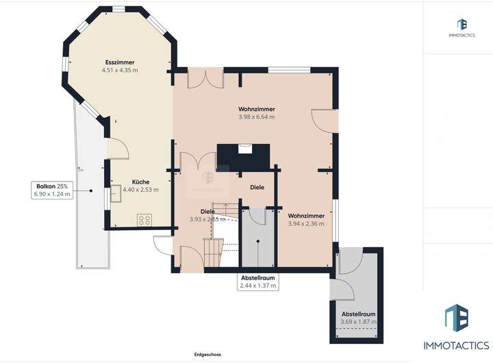Die Küche mit Essbereich im Erker ist offen und geräumig gestaltet und bildet den Mittelpunkt des täglichen Lebens. Kurze Wege, ein separates Gäste-WC sowie praktische Abstellmöglichkeiten unterstreichen die Alltagstauglichkeit des Grundrisses.