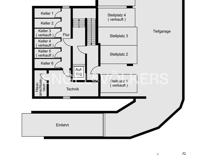 Zu der Einheit gehört ein Kellerraum sowie ein Tiefgaragenstellplatz (zzgl. 30.000 EUR), mit der vorbereiteten Möglichkeit eine Wall-Box für E-Fahrzeuge zu installieren.