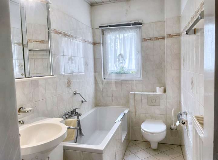 Die Küche ist separat gehalten und bietet ausreichend Platz für einen Essbereich. Das Tageslichtbad ist mit einer Badewanne, einem Waschbecken und einem WC ausgestattet.