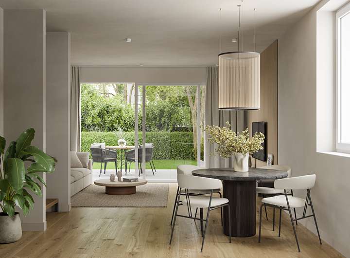 Hier findet Ihre Familie das ideale Zuhause! Die familienfreundliche Gestaltung des Erdgeschosses mit dem großzügigen Wohn-/Essbereich schafft eine einladende Atmosphäre. Die offene Küche, eine gemütliche Wohndiele und das Gäste-WC runden das Erdgeschoss gelungen ab. Von Wohnzimmer geht es hinaus auf die Terrasse mit Blick auf Ihr pflegeleichtes Grundstück – bei schönem Wetter eine wunderbare Erweiterung des Platzangebotes, perfekt zum Entspannen nach einem langen Tag, während die Kinder sicher im Garten spielen. Im Obergeschoss erwartet Sie zwei großzügig dimensionierte Schlafzimmer und ein modernes Tageslichtbad mit Komfort und Stil. Das 30 m² große Studio lässt keine Wünsche offen – ob als HomeOffice für konzentrierte Stunden fern des familiären Trubels, als Gästebereich oder auch als separater Raum für Kreativität. "Tüpfelchen auf dem i" hier oben ist eine Dachterrasse, die zu Denkpausen im Freien einlädt. Ihr neues Zuhause verfügt über einen großen Kellerraum, der vielfältig genutzt werden kann – ob als Hobbyraum, Vorratskeller oder Waschküche. Moderne Fußbodenheizung und eine energieeffiziente Wärmepumpe (Energieausweis A+) sorgen für Wohlfühlklima und niedrige Nebenkosten. Zwei PKW-Stellplätze hintereinander können für zusätzliche 10.000 EUR erworben werden.