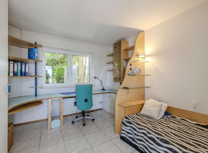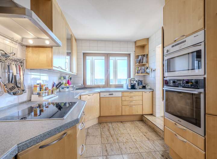 Die geräumige Einbauküche fügt sich harmonisch in das Raumkonzept ein und bietet alles, was das Kochen zum Vergnügen macht. Durchdachte Raumaufteilungen schaffen vielseitige Nutzungsmöglichkeiten – so lässt sich bei Bedarf eine separate Einliegerwohnung realisieren, ideal für Mehrgenerationenwohnen, Gäste oder ein Homeoffice.