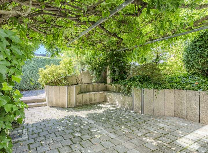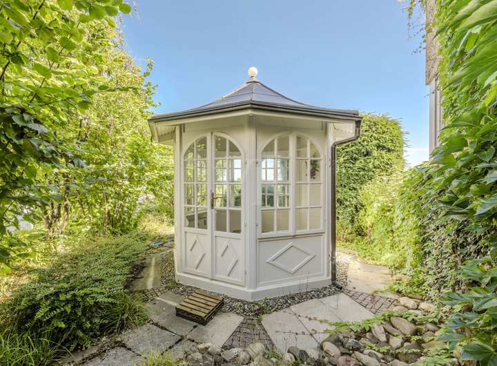 Der Außenbereich ist liebevoll gestaltet und bietet mit dem charmanten Teehaus, überdachten Terrassen und gepflegten Grünflächen zahlreiche Rückzugsmöglichkeiten. Eine Garage sowie ein zusätzlicher PKW-Stellplatz stehen zur Verfügung und runden das Angebot ab.