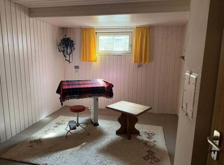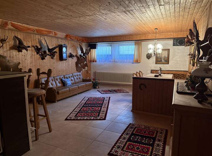 Zwei Schlafzimmer, ein Tageslichtbad sowie eine geräumige Küche bieten viel Platz. Über eine Wendeltreppe gelangt man in das Untergeschoss, wo neben einem sehr großer Hobby- oder Partyraum zwei weitere helle Räume, ein WC, zwei Keller, der Öllagerraum sowie der Hausanschlussraum mit Platz für Waschmaschine und Trockner zu finden sind.