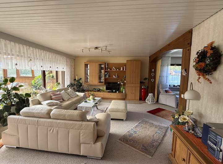 Zum Verkauf kommt ein sehr gepflegtes Einfamilienhaus mit sonnigem Garten und großer Doppelgarage.