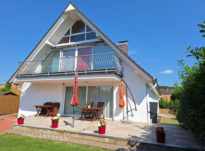Einfamilienhaus mit drei Wohnungen, Vollkeller, Energieverbrauch 80,5 kWh/(qm * a), 1 gr. Garage, 2 Stellplätze, Fußbodenheizung, Kaminanschlüsse, zus. Spitzboden als Studio Whg. 1: EG, ca. 150qm, 4 Zi., Küche, Bad, Gäste-WC, 2 Terrassen Whg. 2: OG, ca. 57qm, 2 Zi. Küche, Bad, Balkon Whg. 3: OG, ca. 44qm, 2 Zi. Küche, Bad, Balkon