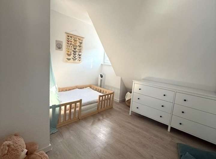 Das Obergeschoss bietet zwei Schlafzimmer sowie ein Tageslichtbad mit ebenerdiger Dusche und WC.