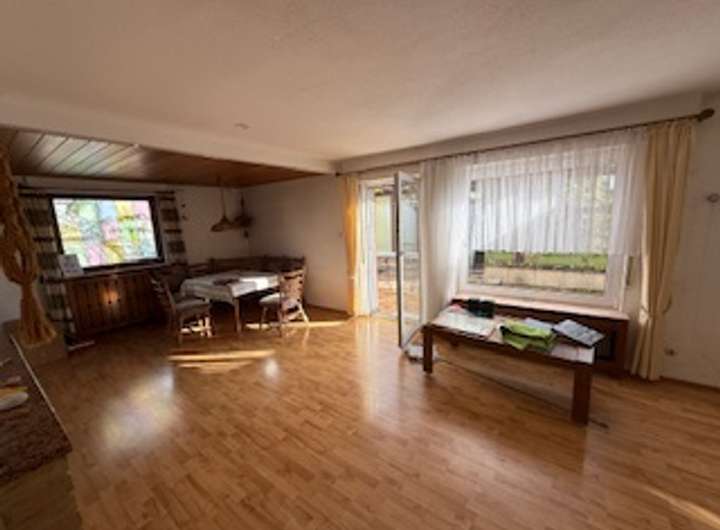 Im Erdgeschoss befindet sich ein großzügiges Wohn- und Esszimmer mit Zugang zum Garten, eine separate Küche sowie ein Gäste-WC. Im Obergeschoss stehen drei Schlafzimmer und ein Badezimmer zur Verfügung. Das Haus ist voll unterkellert und bietet somit zusätzlichen Stauraum und Nutzungsmöglichkeiten. Ausstattung • Baujahr: 1960er Jahre • Fenster und Heizungsanlage wurden in den letzten Jahren erneuert • Einfache Ausstattung • Bodenbeläge sowie Bäder renovierungsbedürftig • Separate Küche • Voll unterkellert • Südwest-Garten • Garage und zwei Stellplätze Mit etwas handwerklichem Geschick lässt sich hier ein wahres Schmuckstück schaffen – ideal für Familien, die eine ruhige Lage mit guter Infrastruktur suchen.