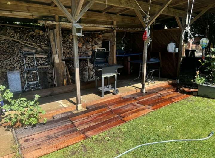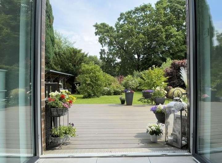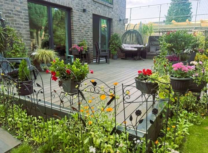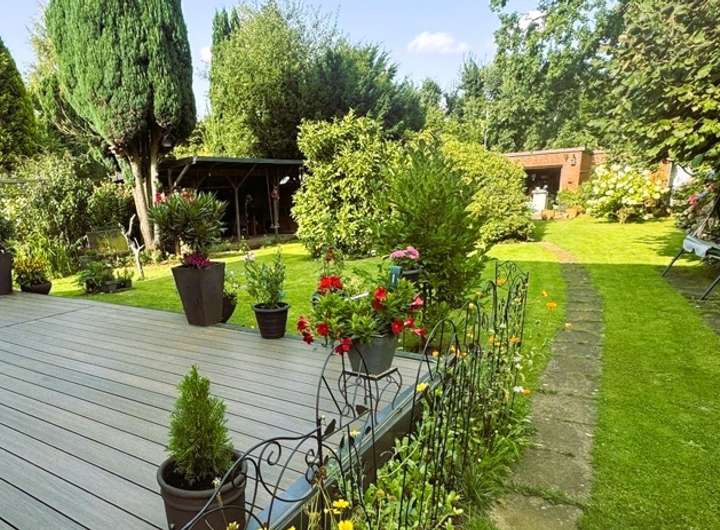 Großzügige WPC-Terrasse mit Südost-Ausrichtung