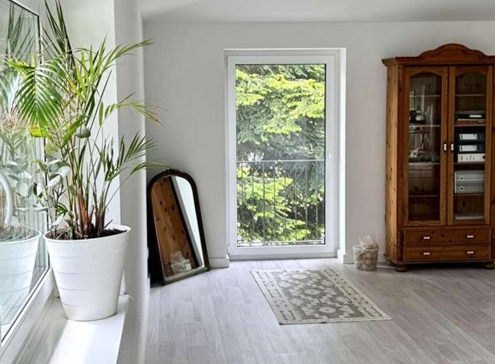 Dreifach verglaste Kunststofffenster (teilweise bodentief) mit Schallschutz zum Flughafen