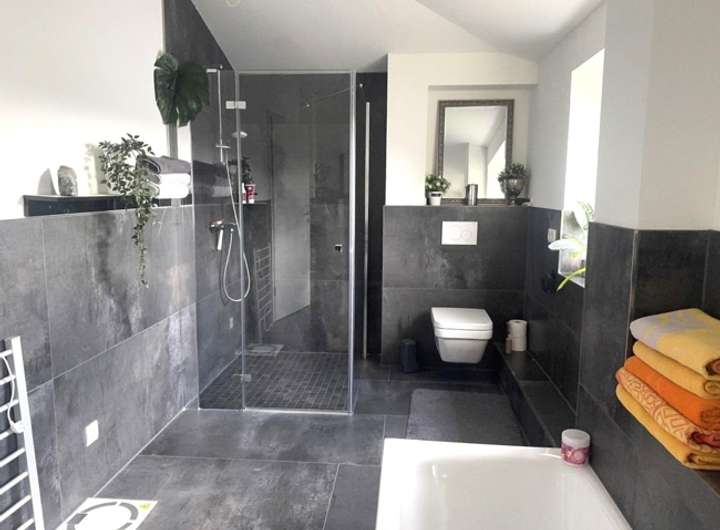 Modern ausgestattete Bäder mit bodengleichen Walk-In Duschen (EG und OG)