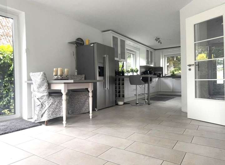 Hochwertige Fliesen im Erdgeschoss, Laminat im Obergeschoss