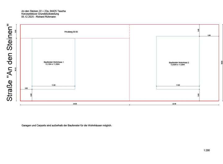 Nach der Teilung des 1000 qm großen Grundstückes werden "An den Steinen 22" zwei gleichwertige Grundstücke mit je 500 qm entstehen.