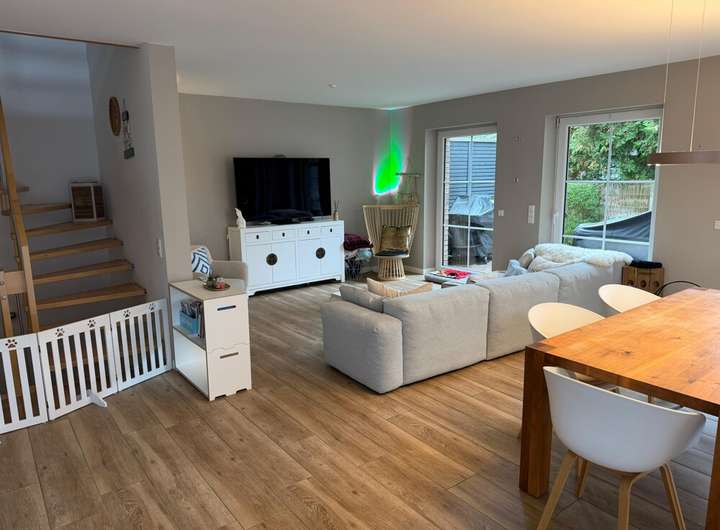 Die Doppelhaushälfte ist ab Februar 26 freistehend.