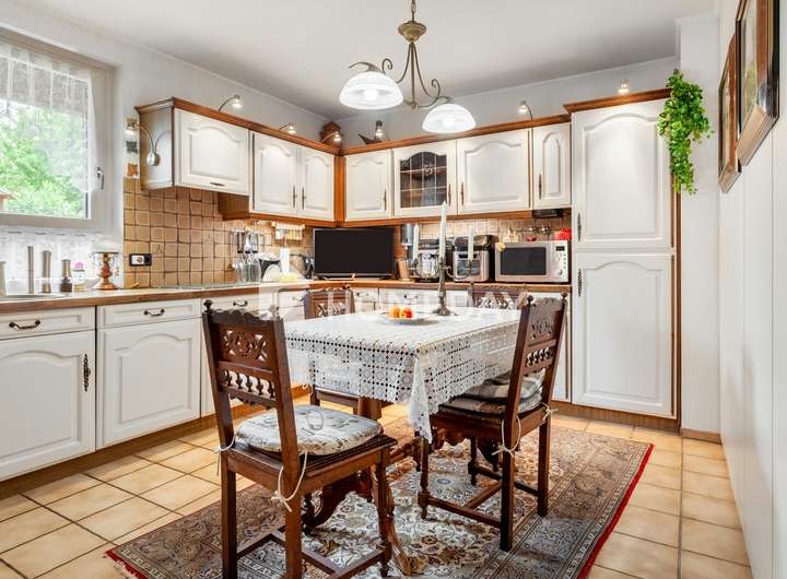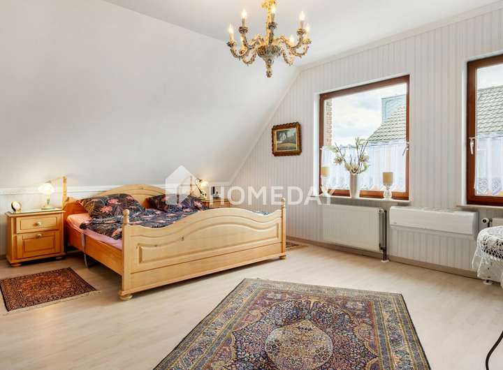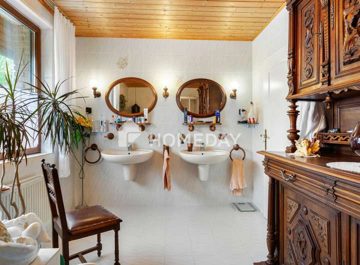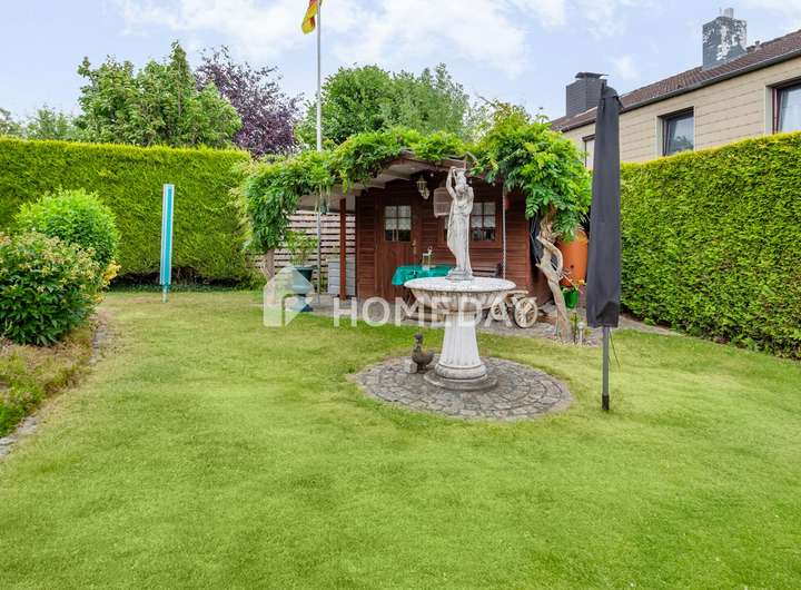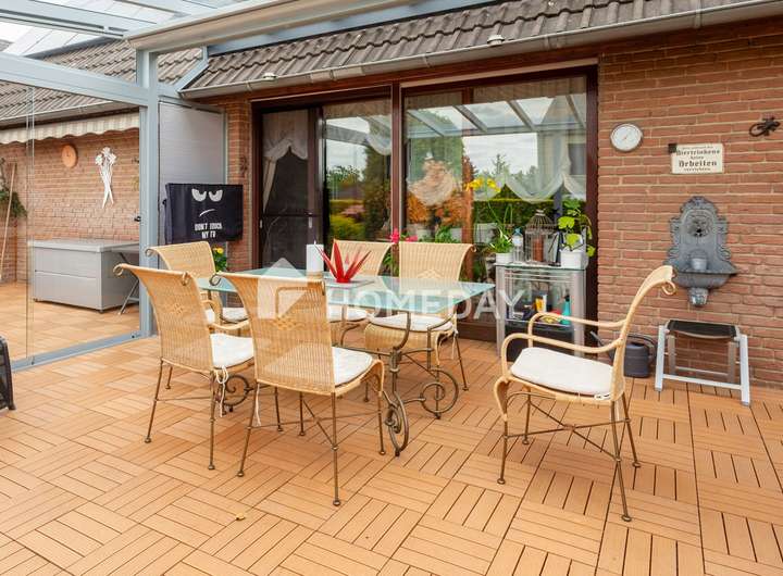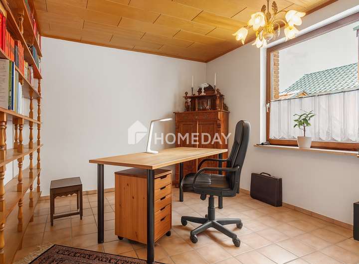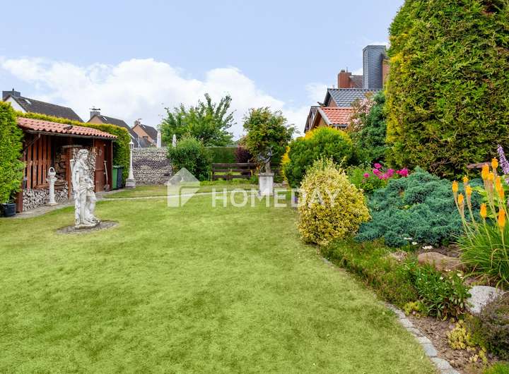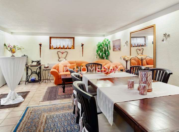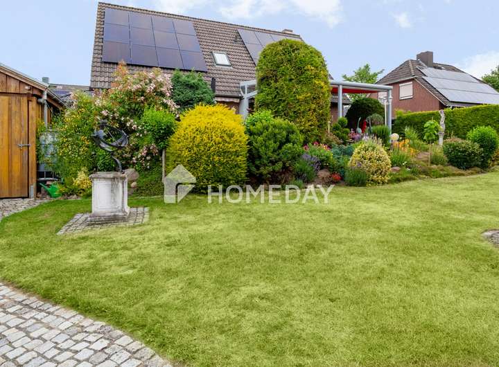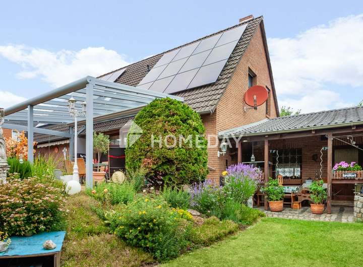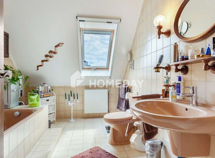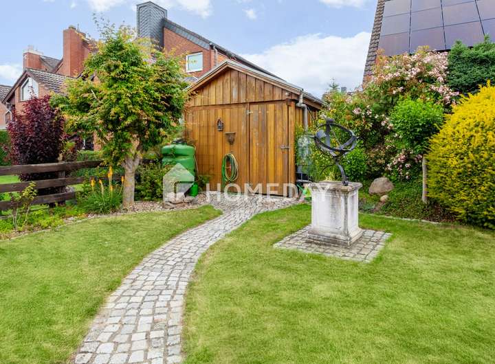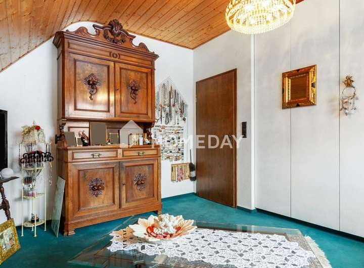 Wohnen mit Charme, Raum und Rückzug – ein Zuhause für viele Lebensmodelle Willkommen in einem gepflegten Einfamilienhaus, das Raum für Individualität und familiäres Leben schafft. Schon beim Eintreten offenbart sich die besondere Atmosphäre, die durch warme Materialien, klare Grundrisse und wohnliche Details geprägt ist. Das Haus wurde 1988 erbaut, erstreckt sich über zwei Etagen und bietet eine Wohnfläche von ca. 155 Quadratmeter – eingebettet in ein liebevoll gestaltetes Grundstück von rund 670 Quadratmeter. Im Erdgeschoss erwartet Sie ein großzügiger Wohnbereich mit Zugang zur überdachten Terrasse. Die Süd-Ausrichtung sorgt für angenehme Lichtverhältnisse – perfekt für entspannte Stunden mit einem guten Buch im Grünen. Der Übergang von innen nach außen ist fließend: Die rund 50 Quadratmeter große Terrasse ist auf der Wetterseite mit hochwertigem Sicherheitsglas eingefasst und bildet ein echtes Highlight – sie schafft einen geschützten Übergang zwischen Wohnraum und Natur und erweitert das Zuhause um eine lichtdurchflutete Freiluft-Oase. Die Küche ist im charmanten Landhausstil gehalten und vermittelt mit ihrer warmen Farbgestaltung und dem Essbereich eine einladende Atmosphäre. Praktisch ist auch der direkte Zugang vom Flur aus. Auf gleicher Ebene befindet sich zudem ein helles Büro – ideal als ruhiger Arbeitsort – sowie ein hochwertig ausgestattetes Tageslichtbad mit Dusche, Badewanne und Doppelwaschplatz. Das Obergeschoss beherbergt drei Rückzugsorte: ein großzügiges Schlafzimmer mit Westausrichtung, das mit stimmungsvollen Sonnenuntergängen aufwartet, ein wohnlich gestaltetes Wohnzimmer und ein Gästezimmer unter der charmant abgeschrägten Dachschräge. Ein weiteres Tageslichtbad – ebenfalls mit Dusche und Badewanne – sorgt für Komfort auf dieser Ebene. Der Keller bietet nicht nur Stauraum, sondern überrascht mit einem großen, wohnlich gefliesten Partykeller samt indirekter Beleuchtung – ein geselliger Ort für besondere Stunden. Zusätzlich stehen ein Fitnessraum sowie ein Gästezimmer zur Verfügung, die den Komfort und die Nutzungsmöglichkeiten des Untergeschosses weiter erhöhen. Im Außenbereich setzt sich das stimmige Gesamtbild fort: Der Garten präsentiert sich mit liebevoll angelegten Beeten, dekorativen Elementen und zwei Gartenhäusern als Oase der Erholung. Ein Carport mit zusätzlichem Stellplatz, eine Garage sowie drei weitere Außenstellplätze ergänzen das Angebot um wertvolle praktische Aspekte – abgerundet durch eine moderne PV-Anlage mit 10 kW Leistung auf dem Dach für nachhaltige Energiegewinnung. Das Wichtigste auf einen Blick: • Einfamilienhaus mit ca. 155 Quadratmeter Wohnfläche auf ca. 670 Quadratmeter Grundstück • 5 Zimmer verteilt auf zwei Etagen • Zwei Tageslichtbäder – jeweils mit Dusche und Badewanne • Küche mit Landhauseinbauküche • Zwei gemütliche Wohnzimmer – eines je Etage • Schlafzimmer mit Westausrichtung • EG komplett gefliest, OG mit Laminat oder Auslegeware • Vollkeller mit großem Partykeller, Fitnessraum und Gästezimmer • Terrasse mit Überdachung (ca. 50 Quadratmeter) • Garten mit Gartenhaus und vielfältiger Bepflanzung • 10-kW-PV-Anlage, installiert auf dem Hausdach • Luftwärmepumpe von 2023 mit Fußbodenheizung • Doppelverglaste Holzfenster mit Rollläden und Wärmeschutz • Carport und weiterer Stellplatz auf dem Grundstück • Im Haus und in der Garage bieten fest integrierte Einbauschränke praktische und platzsparende Stauraumlösungen Eine Immobilie wie diese ist selten – sie verbindet Stil, Effizienz und Raumvielfalt. Sichern Sie sich diesen besonderen Wohnsitz, bevor es andere tun.