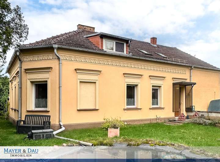 Dieses außergewöhnlich charmante Anwesen befindet sich in idyllischer Lage von Kallinchen. Das rund 1.690 m² große Grundstück liegt malerisch auf einer kleinen Eckspitze, an der zwei Straßen zusammenlaufen, ein besonders schöner Standort mit einem Weg und einer Parkbank direkt davor, der dem Ensemble eine offene, einladende Atmosphäre verleiht.