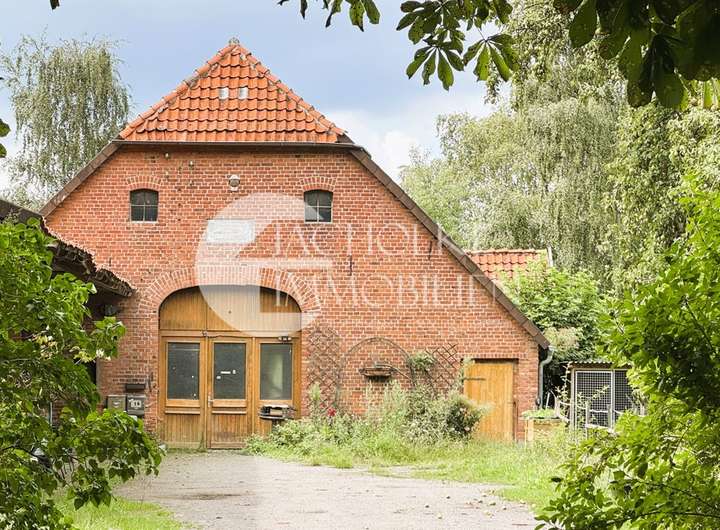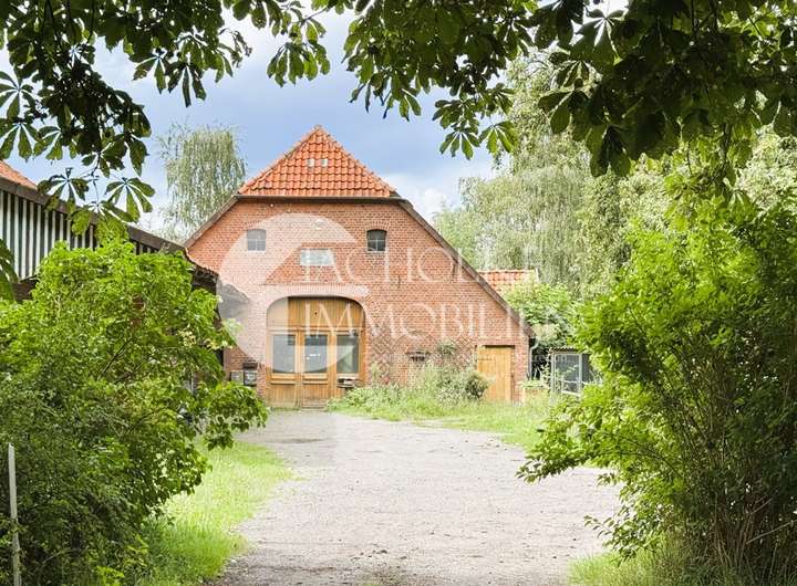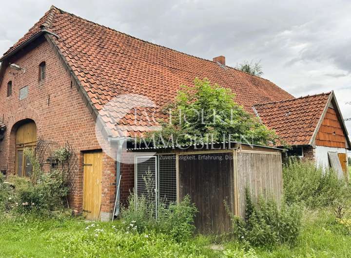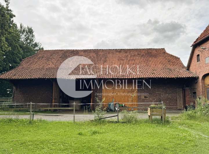 Das Ensemble umfasst ein klassisches Wohnhaus nebst im Jahr 2015 renovierter Einliegerwohnung (ca. 1927), eine historische Diele, einen ehemaligen Kuhstall (ca. 1955), eine Scheune und einen Schuppen – insgesamt stehen ca. 3.420 m² Nutzfläche zur Verfügung. Die Gebäude bieten vielfältige Nutzungsmöglichkeiten, etwa für Tierhaltung, Lagerung, Handwerk oder alternative Wohnkonzepte.