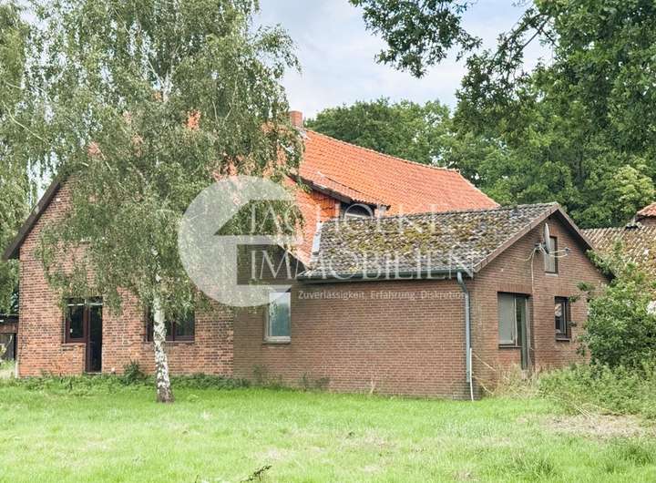 In ruhiger Alleinlage von Adelheidsdorf, Ortsteil Großmoor, befindet sich diese großzügige Hofstelle mit historischen Gebäuden und umfangreichen Flächen. Das Ensemble besteht aus einem Wohnhaus, mehreren Wirtschaftsgebäuden (Diele, Kuhstall, Scheune und Schuppen) sowie einem weitläufigen Grundstück mit Grün- und Ackerland. Die Gesamtgröße des Anwesens beträgt ca. 18,5 ha.