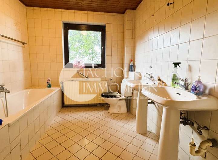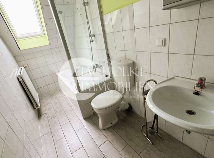 -Die Sanitäranlagen sind einfach ausgestattet und sollten im Rahmen einer Modernisierung erneuert werden.