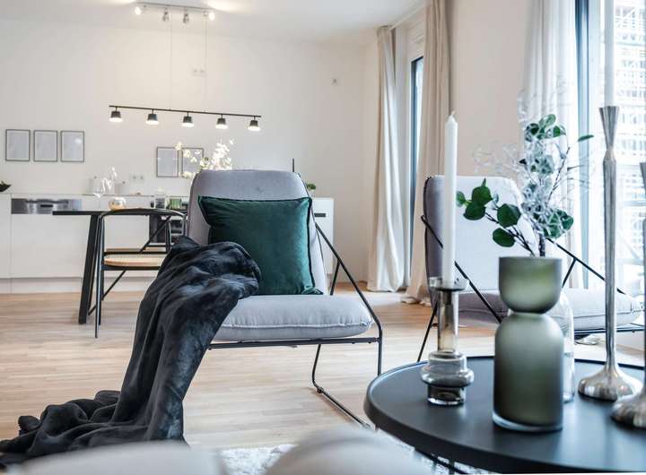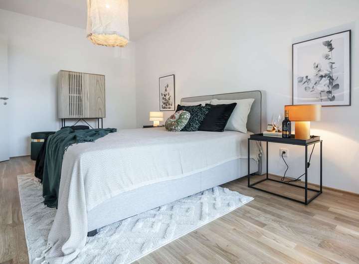 Die Ausstattung lässt keine Wünsche offen: Hochwertiges Eiche-Echtholzparkett, Fußbodenheizung mit Free-Cooling-Technologie und elegante Feinsteinzeugfliesen in den Bädern schaffen ein Ambiente zum Wohlfühlen. Teilweise bodentiefe Fenster sorgen für lichtdurchflutete Räume, elektrische Rollläden und schwellenfreie Zugänge garantieren höchsten Komfort. Ein Aufzug, Kellerabteile sowie PKW- und Fahrradstellplätze sind selbstverständlich Teil des Angebots.