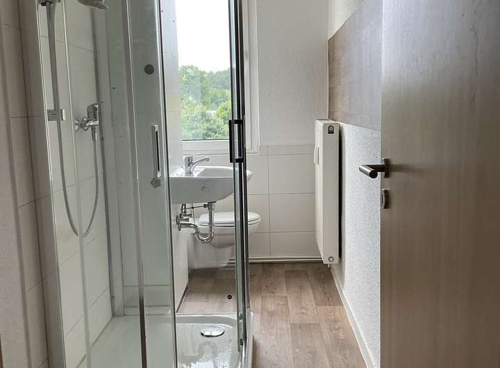 Die Wohnung ist 2020 komplett saniert worden. Wände und Decken sind mit Raufasertapete versehen und die Fußböden sind mit Belag neu ausgelegt. Das Duschbad und das Wannebbad sind gefliesst und die sanitären Objekte wurden neu eingebaut.