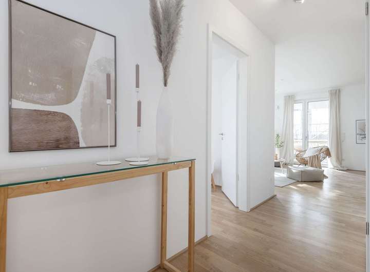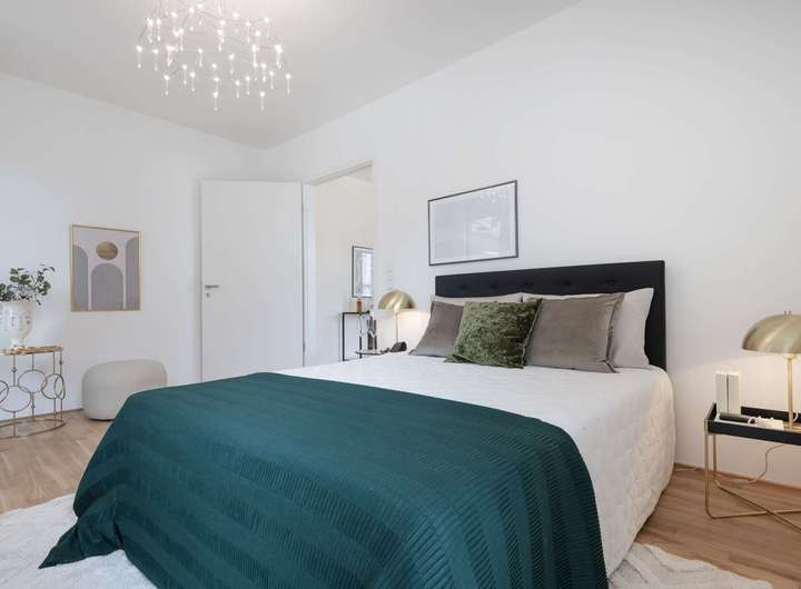 Die Ausstattung lässt keine Wünsche offen: Hochwertiges Eiche-Echtholzparkett, Fußbodenheizung mit Free-Cooling-Technologie und elegante Feinsteinzeugfliesen in den Bädern schaffen ein Ambiente zum Wohlfühlen. Teilweise bodentiefe Fenster sorgen für lichtdurchflutete Räume, elektrische Rollläden und schwellenfreie Zugänge garantieren höchsten Komfort. Ein Aufzug, Kellerabteile sowie PKW- und Fahrradstellplätze sind selbstverständlich Teil des Angebots.