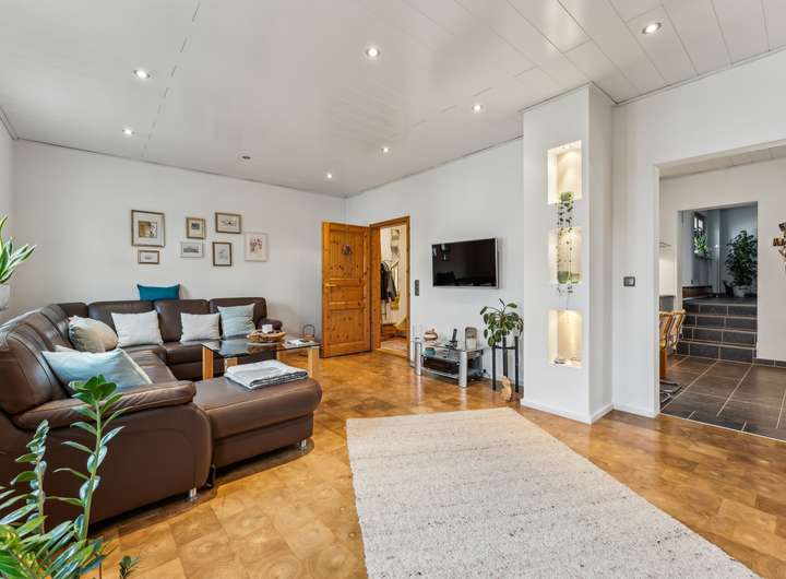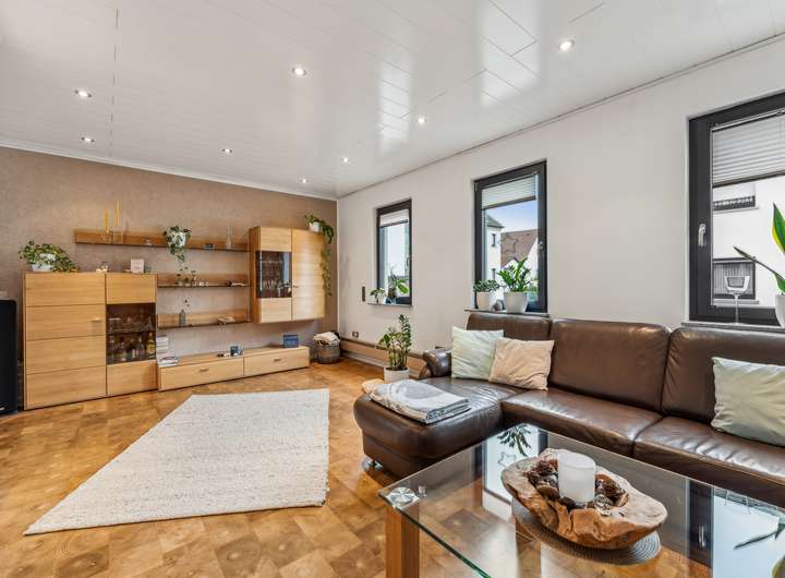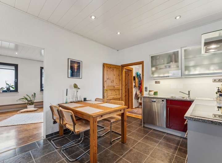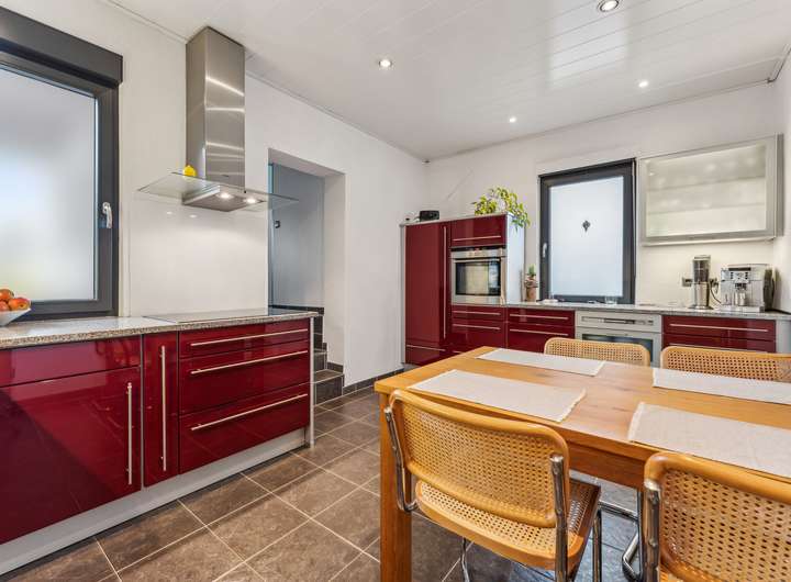 * Wohnen auf zwei Ebenen * hochwertige Bordeaux-Rote Lackküche aus dem Jahr 2008 mit Fussbodenheizung * verschiedene Bodenbeläge (dunkelgraue Fliesen, Hirnholzparket, Kork und Holzboden * dreifach verglaste Kuststofffenster * elektische Aufsatzrollläden * Balkonkraftwerk ohne Speicher * abgehängte Decken mit Leuchten * 1 x Badezimmer en-suite * 1 Gäste Badezimmer/WC * komplett Unterkellert * wunderbar blühender Garten * Junker Gasheizung aus dem Jahr 1997 * Stellplatz