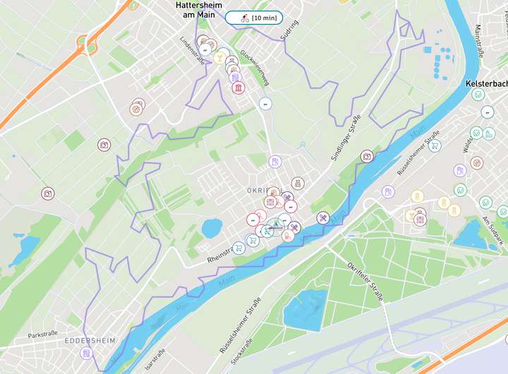Hattersheim besteht aus den drei Stadtteilen Hattersheim, Eddersheim und Okriftel.