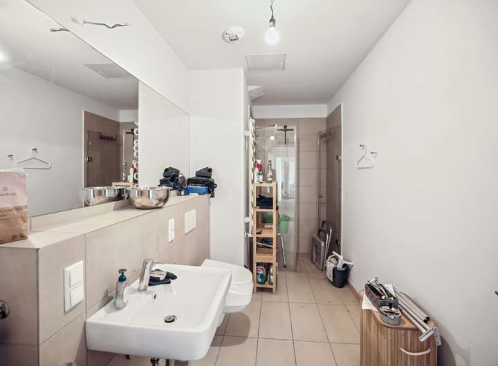 • modernes Bad mit Walk-In-Dusche + Waschmaschinenanschluss