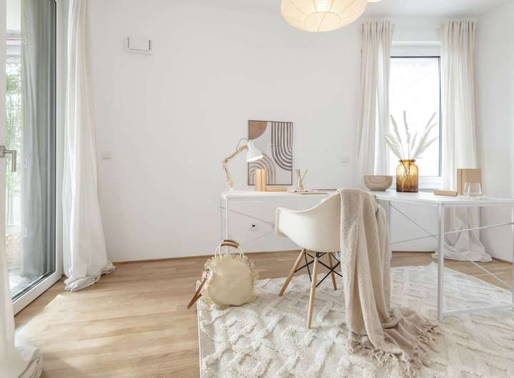 Die Ausstattung lässt keine Wünsche offen: Hochwertiges Eiche-Echtholzparkett, Fußbodenheizung mit Free-Cooling-Technologie und elegante Feinsteinzeugfliesen in den Bädern schaffen ein Ambiente zum Wohlfühlen. Teilweise bodentiefe Fenster sorgen für lichtdurchflutete Räume, elektrische Rollläden und schwellenfreie Zugänge garantieren höchsten Komfort. Ein Aufzug, Kellerabteile sowie PKW- und Fahrradstellplätze sind selbstverständlich Teil des Angebots.
