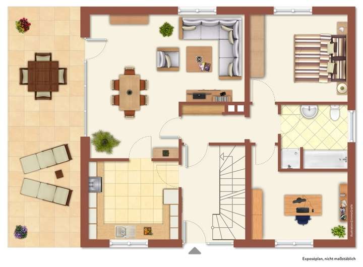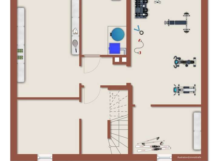 Wer noch mehr Platz benötigt, wird vom Vollkeller des Hauses begeistert sein. Hier finden Sie ausreichend Stauraum für Waschküche, Vorräte, Werkstatt und Heizungsraum sowie einen großen Hobbyraum.