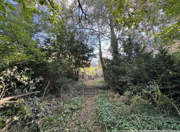 Das Grundstück hat eine Größe von ca. 772 m² und ist rechteckig geschnitten. Die Straßenfront weist eine Länge von rund 22 Meter auf. Die Grunstückstiefe (Ost-West-Ausdehnung) beträgt ca. 35 Meter. Nach hinten (in Richtung Westen) ist ein deutlich abfallendes Geländeprofil zu verzeichnen. Diese Hanglage erfordert erhöhte Aufwendungen für Gründungsmaßnahmen für den Neubau des Wohnhauses sowie die Herstellung straßenseitig befahrbarer PKW-Stellplätze, erlaubt aber auch eine interessante Gestaltung des Grundstücks und einen wunderschönen Ausblick. Das Grundstück blieb in den letzten Jahren ungenutzt, so dass sich die Natur ihren Raum teilweise zurück erobern konnte. Im hinteren Grundstücksbereich befinden sich ein abzureißendes Kleinhaus und Nebengebäude. Abriß- und Freilegungskosten sowie erhöhte Aufwendungen, die sich aus der Hanglage ergebn, wurden bei der Kaufpreisfindung bereits berücksichtigt.