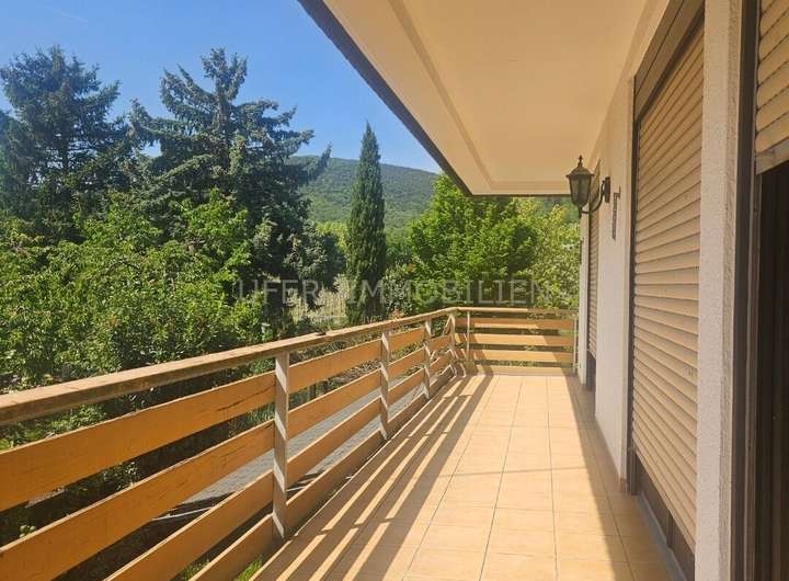 - 1 OG: großzügiges, helles Badezimmer, 5 Schlafzimmer, 3 mit Zugang auf einen durchgehenden Balkon mit einer wunderbaren Aussicht auf den Pfälzer Wald und Garten.