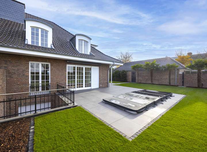 Eine elektrische Toranlage, eine Alarmanlage sowie eine Video-Gegensprechanlage ergänzen das Sicherheitskonzept und bieten ein beruhigendes Maß an Schutz. Dieses Zuhause vereint zeitgemäßen Wohnkomfort, Privatsphäre und Funktionalität – perfekt für ein entspanntes und stilvolles Familienleben.
