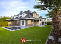Diese stilvolle Villenhälfte aus dem Jahr 2006 vereint gehobenen Wohnkomfort mit klassischer Architektur in massiver Bauweise. Auf einem ca. 700 m² großen, optimal nach Süden bis Südwesten ausgerichteten Grundstück gelegen, bietet das Anwesen ein hohes Maß an Privatsphäre und Lebensqualität.