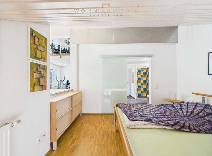 Herzstück dieser Ebene ist ein großzügiger, beheizter Raum mit fast 26 m² Fläche, Tageslichtfenstern und annähernd identischer Raumhöhe wie in den oberen Wohngeschossen. Aktuell als Werkstatt genutzt, eignet sich dieser Bereich ideal als Hobbyraum, Atelier, Fitnessbereich oder auch als kreativer Rückzugsort mit hoher Aufenthaltsqualität.